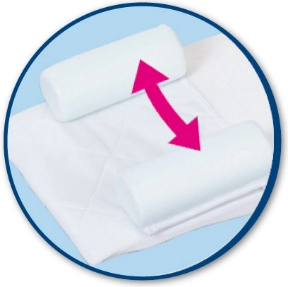 Dies beruht auf der Neigung des elastischen Memory-Schaum-Materials und zwei seitlichen Stützen, die mit Klettverschluss anpassbar sind.