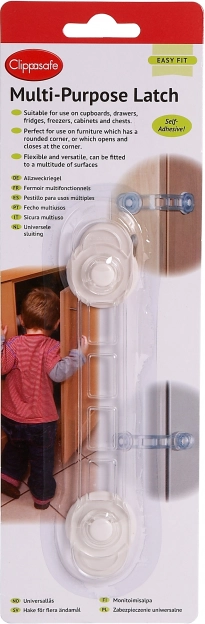 Die Mehrzwecksicherung von Clippasafe ist einfach zu verwenden und hilft, zu verhindern, dass Kinder Schränke, Schubladen, Kühlschränke, Gefrierschränke, Schränkchen und Kisten öffnen.