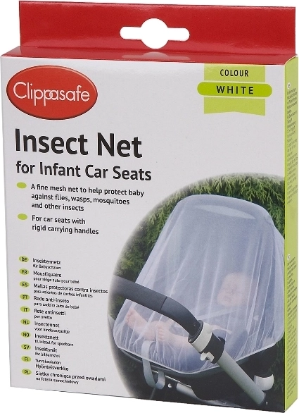 Schützen Sie Ihr Kind mit unserem praktischen Schutznetz für Autokindersitze vor Fliegen, Wespen und Mücken. Einfach anwendbar und passend für Sitze mit festen Griffen.