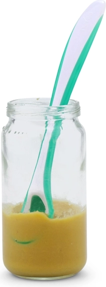 Set von thermosensitiven Löffeln, die ihre Farbe ändern, wenn sie in Kontakt mit Nahrung kommen, die wärmer als 37 °C ist, und so die Sicherheit Ihres Babys vor Verbrennungen gewährleisten.