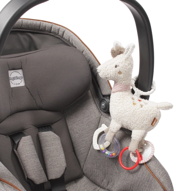 Entdecken Sie das Aktivitätsspielzeug Lama, das kuschelige Plüschspielzeug, das motorische Fähigkeiten fördert und sich schnell an Kinderwagen und Autositzen befestigen lässt. Perfekt für Kleinkinder ab 0 Monaten.