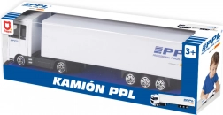 Entdecken Sie das detailliert ausgearbeitete PPL-Lkw-Modell, das einem echten Logistik-Sattelzug nachempfunden ist. Die Metallausführung der Kabine verleiht Robustheit, der PVC-Auflieger mit authentischem PPL-Logo fällt sofort ins Auge. Dank Freilauf bewegt sich das Modell sanft auf ebenen Flächen und ist ideal für den spielerischen Transport von „Sendungen“ sowie für die Präsentation in der Vitrine.
