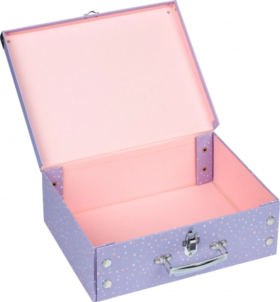 Praktischer und verspielter faltbarer Koffer ideal zur Aufbewahrung von Spielzeugen und Kleinigkeiten. Hergestellt aus robusten Materialien und leicht tragbar dank des Metallgriffs.