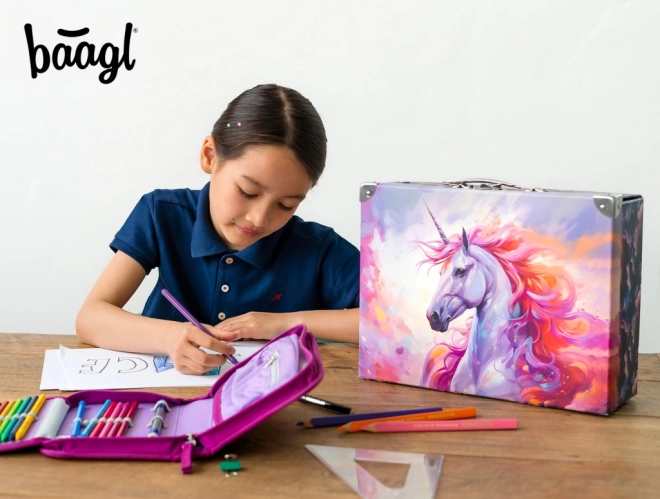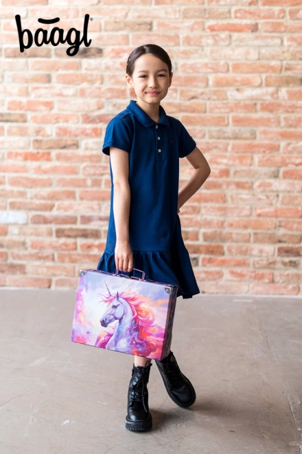 Der Koffer ist mit einem Metallgriff ausgestattet, um bequemes Tragen zu ermöglichen, und wird mit einer klassischen Schnalle verschlossen, die Sicherheit bei der Benutzung gewährleistet. Kinder werden das attraktive und spielerische Design lieben, das sowohl für Kuscheltiere, als auch für Schulbedarf oder Spielzeug geeignet ist.