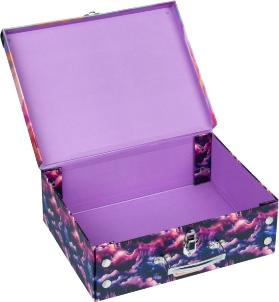 Entdecken Sie die Magie mit unserem zusammenklappbaren Kinderkoffer, der die ideale Ergänzung für jedes Kind ist. Hergestellt aus starkem laminiertem Papier, wurde dieser Koffer entworfen, um alle Schätze Ihrer Kinder zu tragen und gleichzeitig Raum für Fantasie zu bieten. Er ist leicht zu verstauen, dank der Möglichkeit des einfachen Zusammenlegens und Auseinanderklappens mit Druckknöpfen.