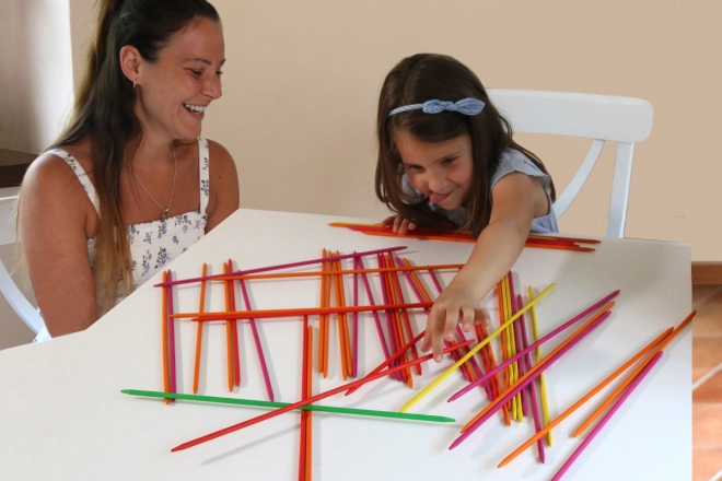 Shanghaier Sonne ist ein traditionelles Mikado-Spiel, das sich in ein dekoratives Element verwandeln lässt. Die bunten Holzstäbchen können zu einem Ring zusammengefügt und als Innendekoration verwendet werden. Dieses Spiel ist für zwei oder mehr Spieler ab 5 Jahren geeignet und fördert Konzentration und Geschicklichkeit.