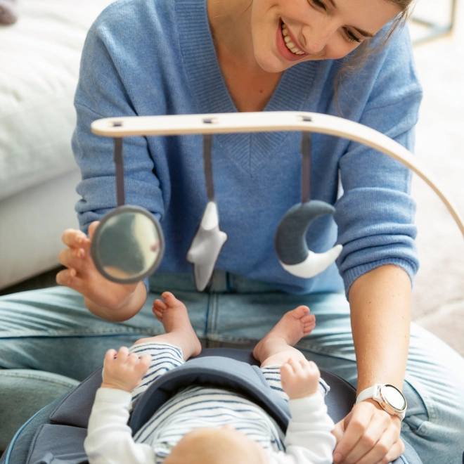 Bieten Sie Ihrem Baby interaktiven Spielspaß mit dem hölzernen Spielbogen Doomoo Seat'n Swing. Spielzeuge in hellen und dunklen Kontrasten ziehen die Aufmerksamkeit der Kinder auf sich, während ihre knisternden Geräusche die Hörsinnesreize stimulieren.