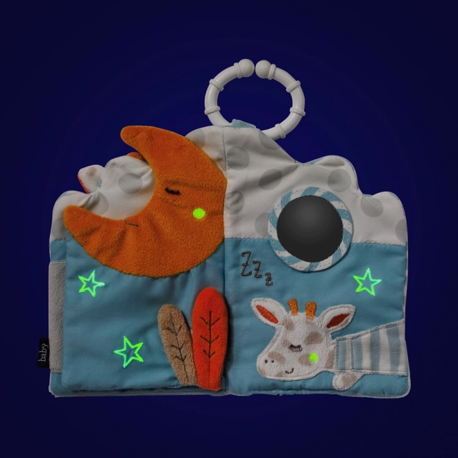 Es enthält leuchtende Elemente, die dem Kind helfen, die Angst vor der Dunkelheit zu vertreiben. Dank der praktischen Schlaufe lässt sich das Buch am Kinderwagen, Autositz oder Kinderbett befestigen.