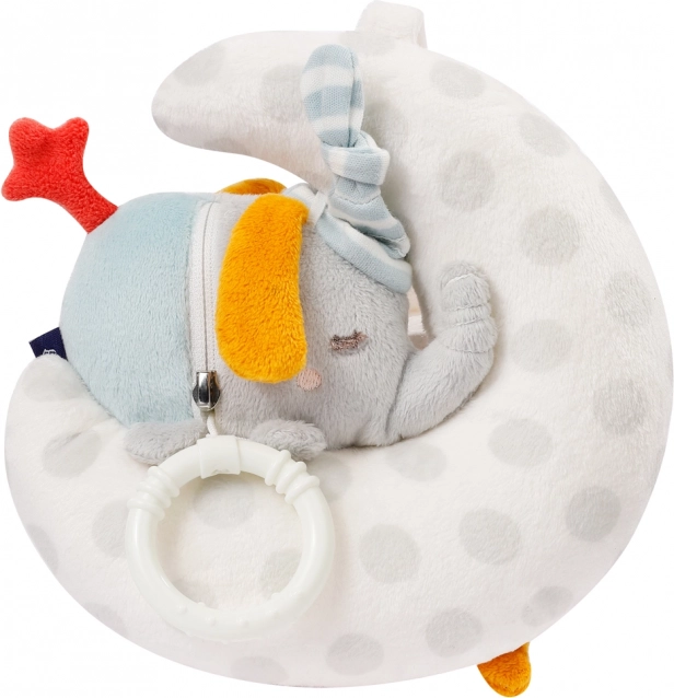 Der kuschelige Elefant auf dem Mond aus weichem, angenehmem Velours zieht auf den ersten Blick die Aufmerksamkeit jedes Kindes auf sich. Dank der Riemen kann er als treuer Begleiter am Kinderbett, Kinderwagen oder an der Wippe befestigt werden. So lässt er sich überallhin mitnehmen, ohne dass die Gefahr besteht, ihn zu verlieren.