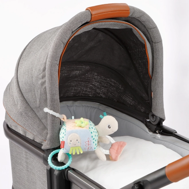 Dank des praktischen C-Rings lässt sich der Stoffwürfel mit Meerestieren leicht am Kinderwagen oder an der Babyschale befestigen und wird so schnell zum treuen Begleiter Ihres Kindes!