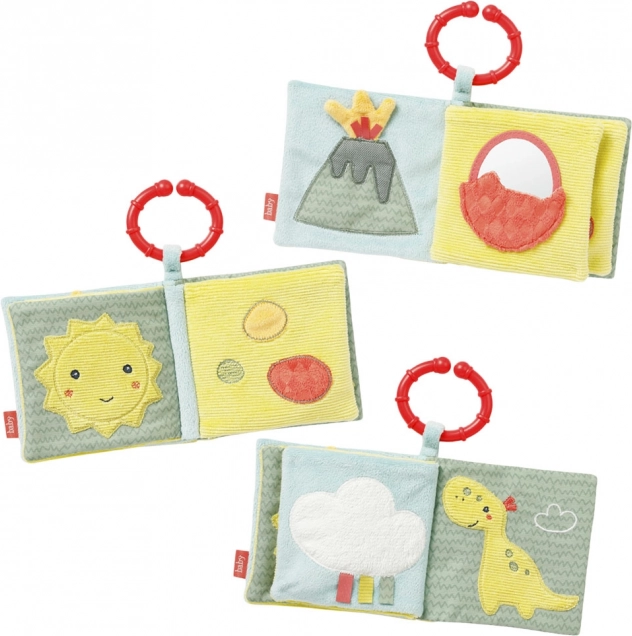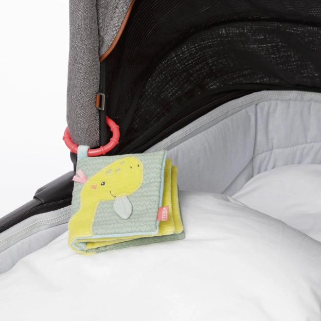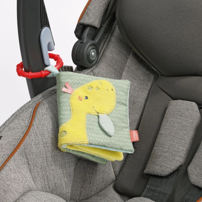 Weiches Babybuch Happy Dino - Ein interaktives Stoffbuch mit 8 Seiten voller spannender Effekte wie Quietscher und Spiegel, fördert die Fantasie und Feinmotorik. Ideale Befestigungsmöglichkeiten für unterwegs.