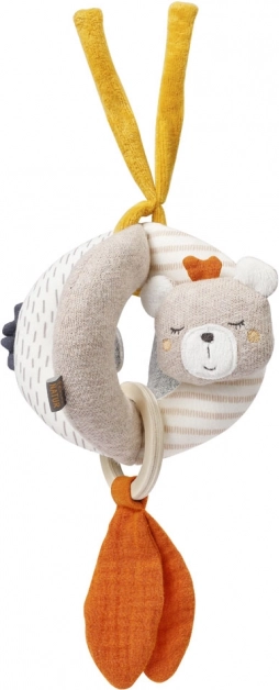 Niedlicher Ballon zum Aufhängen aus 100 % Bio-Baumwolle. Er liegt gut in der Hand, fördert die natürliche Neugier und die Feinmotorik kleiner Kinder. Der Ball enthält zudem eine Rassel und einen Holzring zur Unterstützung der Koordination. Dank der praktischen Größe und der Aufhängbänder lässt sich der Ballon leicht an Kinderbett, Kinderwagen oder Autositz befestigen, sodass das Kind ihn jederzeit bei sich haben kann.