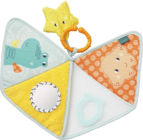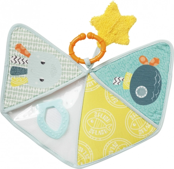 Entdecken Sie die zauberhafte Wasserwelt. Beim Blättern durch das Stoffbuch lernt Ihr Baby viele neue Badefreunde kennen, wie ein U-Boot, einen kleinen Oktopus, ein Krokodil sowie Muscheln und Seesterne. Eine versteckte Rassel, knisterndes Papier und ein Beißring fördern spielerisch die kindlichen Sinne, die Vorstellungskraft und die Feinmotorik.