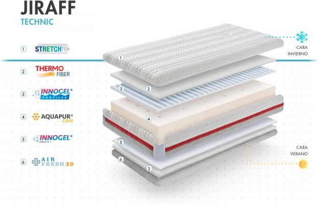 Profiled Innogel® + Visco Innogel® – Bietet mehr Frische als herkömmlicher Memory-Schaum. Gelpartikel verlangsamen die Wärmeaufnahme und mindern das Wärmeempfinden, sodass die Matratze mit dieser Schicht einen ruhigen und ungestörten Schlaf gewährleistet.