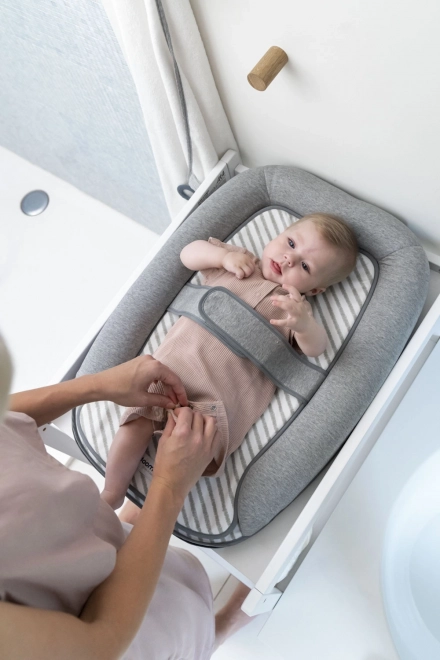 Doomoo Cosy Care ist eine weiche und sichere Wickelauflage mit Sicherheitsgurt und weichen, aufrechtstehenden Rändern, ideal für die Pflege Ihres Kindes.
