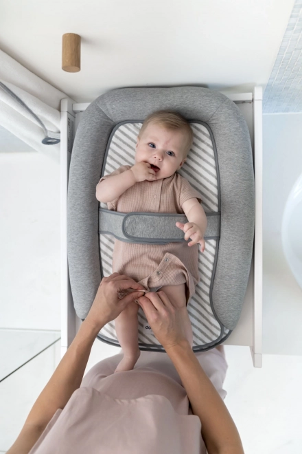 Die Doomoo Cosy Care Auflage ist mit einem Sicherheitsgurt ausgestattet, der Ihr Kind während des Wickelns sicher in Position hält.