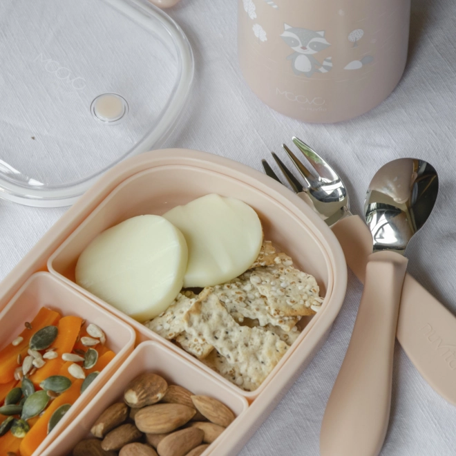 Hochmodulares System, ideal zum Aufbewahren und Transportieren von Mittagessen, Snacks, Obst und Gemüse. Der innere Einsatz besteht aus 3 Fächern, die einzeln herausgenommen werden können. Der Deckel verfügt über eine Dichtung gegen das Auslaufen von Flüssigkeiten.