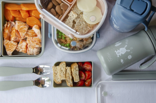 Edelstahl-Thermoflasche mit Trinkhalm, dadurch geeignet für Kinder ab 6 Monaten. Hält den Inhalt bis zu 24 Stunden kalt oder bis zu 12 Stunden warm. Das auslaufsichere Deckel hält die Flüssigkeit in der Flasche und die praktische Schlaufe erleichtert das Tragen und die Handhabung.