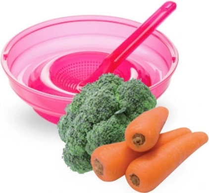 Entdecken Sie das vielseitige 4-in-1-Multifunktionsset in Pink: Ideal zum Reiben, Entsaften und Zerkleinern von Gemüse, Obst und mehr. Praktisches Set für die Zubereitung gesunder Babynahrung.