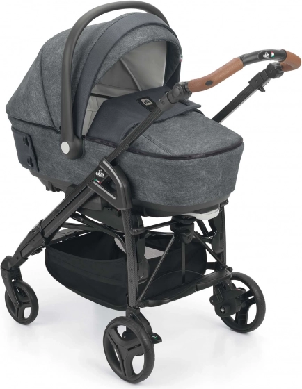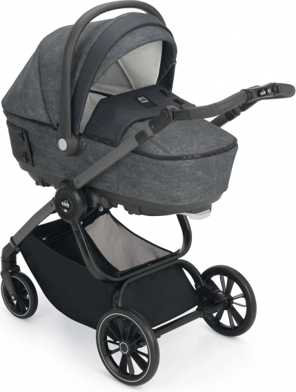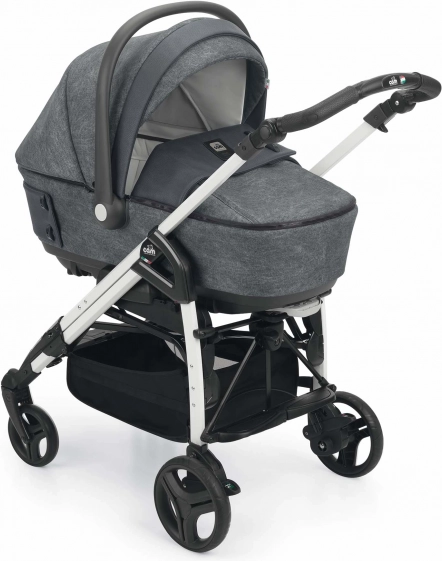 Geräumige, tiefere Babywanne mit modernem Look und Accessoires in Form interessanter Knöpfe. Die Fußdecke der Babywanne lässt sich dank Reißverschlüssen leicht abnehmen. Durch die Belüftung im Verdeck ist sie auch ideal für die Sommermonate. Durch das Ausklappen der Stützfüße an der Unterseite der Wanne kann sie auch als Wippe verwendet werden. Mit der Arretierung an der Unterseite der Wanne lässt sich die Kopfposition des Kindes in der Höhe verstellen. Die Wanne verfügt über ein einfaches Abnahmesystem vom Gestell – mit nur einer Sicherung – für noch mehr Sicherheit bei der Handhabung von Wanne und Kind.