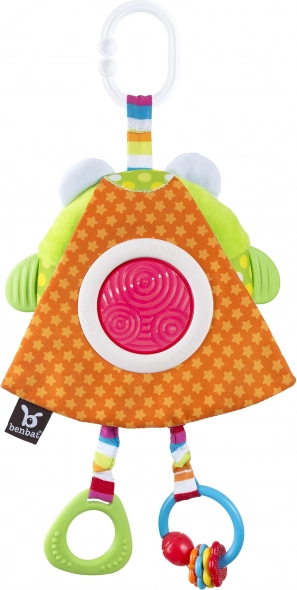 Helle Farben, ein niedlicher Plüsch-Tierfreund, Bänder und Rasseln unterhalten Kinder nicht nur, sondern fördern zugleich ihre psychomotorischen Fähigkeiten. Die Rassel im Bauch des Plüschtieres hilft dem Kind, Geräusche zu fokussieren und zu identifizieren, bewegliche Teile trainieren die Hand-Auge-Koordination. Der leicht zu befestigende Clip an Kinderwagen, Autositzen und mehr sorgt dafür, dass das Spielzeug immer zum Kind ausgerichtet ist. Kunststoffteile sind BPA-frei. Geeignet ab Geburt.