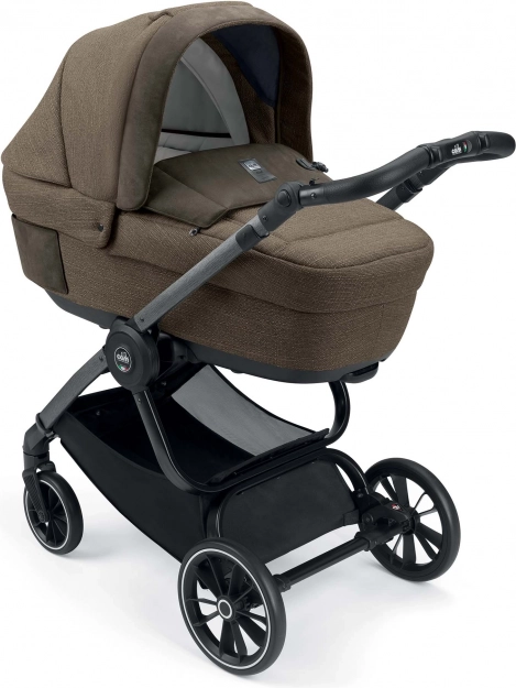Geräumige, tiefe Babywanne mit modernem Look und Akzenten in Form interessanter Knöpfe. Die Fußabdeckung der Babywanne lässt sich dank Reißverschlüssen leicht abnehmen. Durch die Belüftung im Verdeck ist sie auch ideal für die Sommermonate.