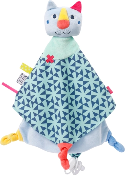 Luxuriöses Schmusetuch Katze aus der Kollektion Color Friends ist der ideale Begleiter für Ihr Kind. Schlafhilfe und Plüschtier in einem, das Komfort und Sicherheit überall – zu Hause oder unterwegs – bietet.