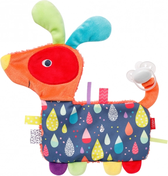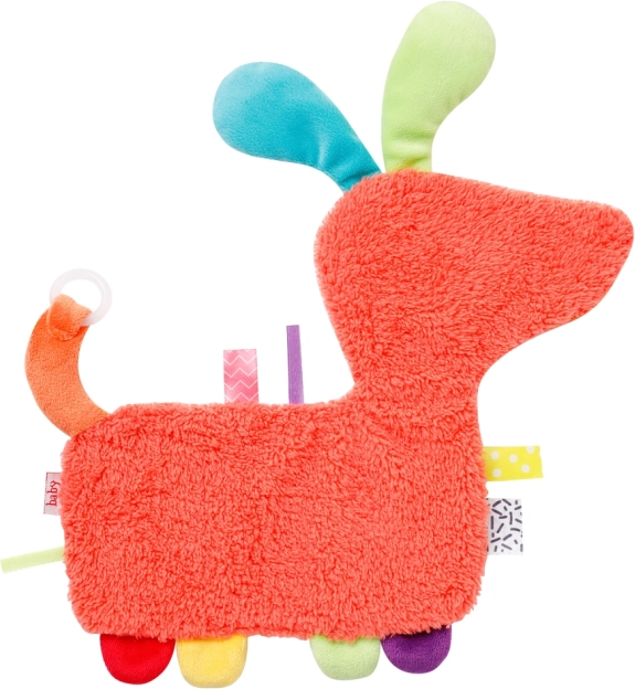 Der bunte, gewellte Hund aus der COLOR-Friends-Kollektion weckt die Neugier des Kindes, fördert das Greifen und unterstützt die Sinne des Kindes. Dank der Materialmischung und dem anregenden Geräusch des versteckten Knisterpapiers wird es nie langweilig. Babys lieben die Form des Hundes und sein flauschiges Fell, um ihn zu greifen, zu berühren, zu entdecken und zu kuscheln! Der niedliche Hund kann überallhin mitgenommen werden und begleitet das Kind beim Spielen und Träumen. Praktischer Befestigungsring.