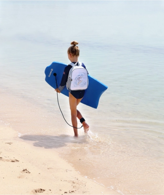 • Die Schultergurte sind speziell so gestaltet, dass sie sich dem Rücken eines kleinen Kindes anpassen. Sie sind außerdem verstellbar und auf der Innenseite aus atmungsaktivem Gewebe gefertigt, das für Tragekomfort sorgt.