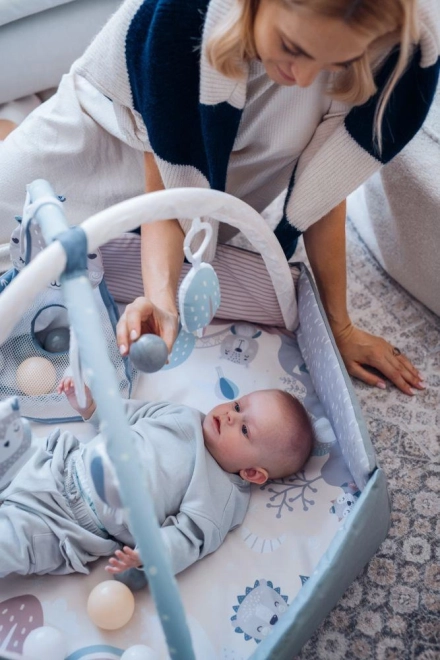 MoMi Pastell bietet einen multifunktionalen Raum, der zum Spielen anregt und motorische Fähigkeiten von Geburt an entwickelt. Seine zusammenklappbare Konstruktion ermöglicht eine einfache Umwandlung in einen Laufstall oder ein trockenes Bällchenbad, was eine flexible Nutzung entsprechend den Bedürfnissen Ihres Kindes erlaubt.