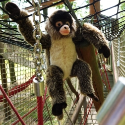 Der Plüschaffe ist detailgetreu gefertigt und ahmt einen lebendigen Affen nach.