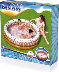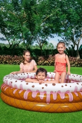 Das aufblasbare Bestway-Becken mit originellem Donut-Design begeistert Kinder auf den ersten Blick. Drei separate Ringe lassen sich leicht aufpumpen und bilden angenehm weiche, aber feste Wände für komfortables Anlehnen. Dank der kompakten Maße ist es ideal für Garten, Terrasse oder Wochenendhaus.