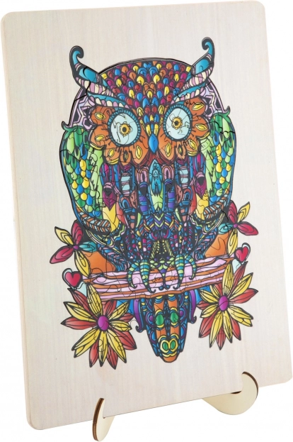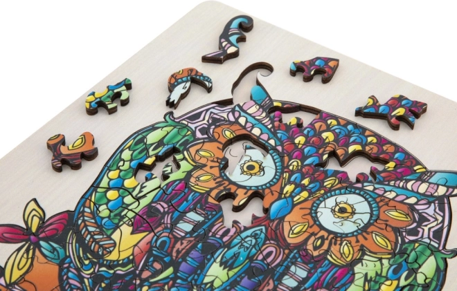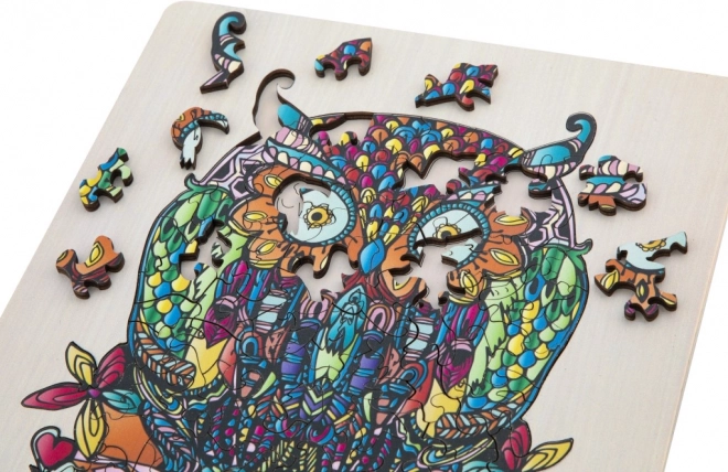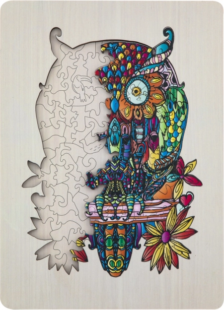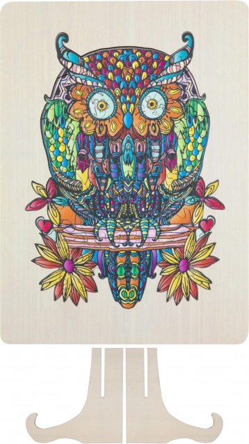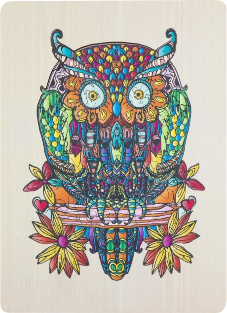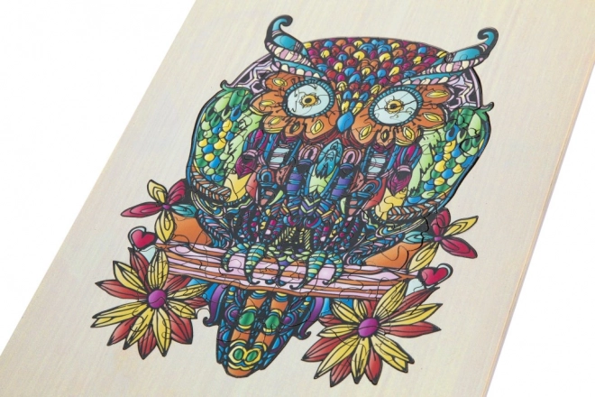 Genießen Sie das Zusammensetzen einer künstlerisch detailreichen und farbenfrohen Eulenillustration, die nicht nur Spaß macht, sondern auch ein ästhetisches Erlebnis bietet.