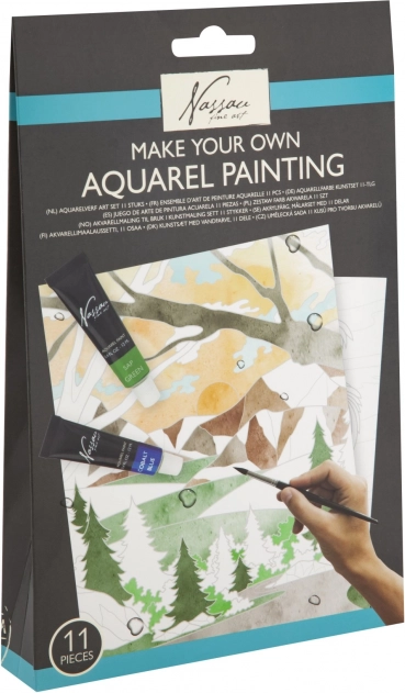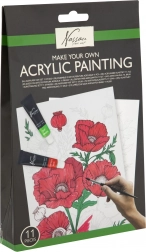Enthält 11 Teile: verschiedene Acrylfarben, Pinsel, vorgezeichnete Leinwand und Anleitung, die Sie Schritt für Schritt durch den Malprozess führt.