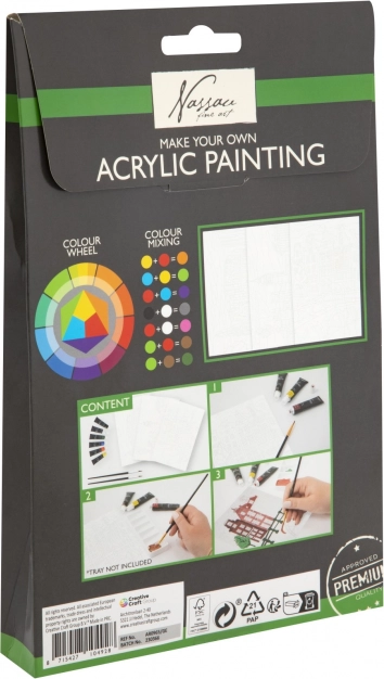 Machen Sie den ersten Schritt zum kreativen Prozess mit unserem Acrylmalset. Es enthält alles Notwendige, einschließlich hochwertiger Acrylfarben, Pinsel und vorgezeichneter Leinwand, die das Malen erleichtert.
