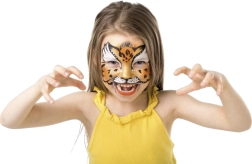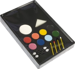 Die Farben lassen sich leicht mit den beigefügten Applikatoren und dem Schwamm auftragen. Nach Ende der Veranstaltung können die Farben einfach mit Wasser oder einem Abschminkpad abgewischt werden.