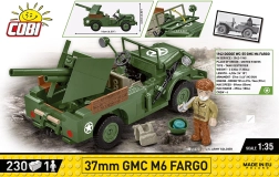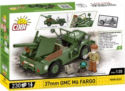 Der 37 mm GMC M6 Fargo ist ein amerikanisches leicht gepanzertes Fahrzeug, das während des Zweiten Weltkriegs eingesetzt wurde. Entwickelt auf dem Fahrgestell des LKWs Dodge WC, war es mit einer 37 mm Panzerabwehrkanone M3 ausgestattet, was es effektiv im Kampf gegen leichte Panzer und Befestigungen machte. Dieses Bausteinmodell von der Marke COBI ist im Maßstab 1:35 hergestellt und besteht aus 230 Teilen.