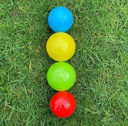Blau, Gelb, Grün und Rot unterstützen die Farberkennung und motivieren zu aktiverem Spiel drinnen und draußen.