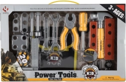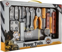 Hammer, Zange, Schraubendreher, Schlüssel sowie Verbindungsmaterial – alles Nötige für realitätsnahes Reparaturspiel und die Förderung technischen Denkens.