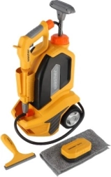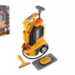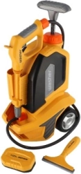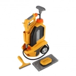 Der Reiniger ermöglicht die Anpassung des Wasserstrahls über die drehbare Abdeckung am Schlauchende. Das Set enthält außerdem einen Schwamm, einen Abzieher und ein Tuch, sodass Kinder alles haben, was sie zum Spielen brauchen.