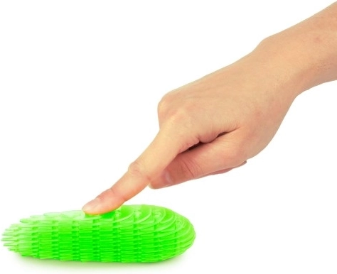 Das Spielzeug hat eine spezielle texturierte Oberfläche, die die Sinne stimuliert und ein einzigartiges haptisches Erlebnis bietet.