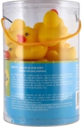Die Ente hat eine Größe von 6 cm und ist ideal für Kinder ab 3 Jahren, was einen sicheren und spielerischen Begleiter beim Baden bietet.