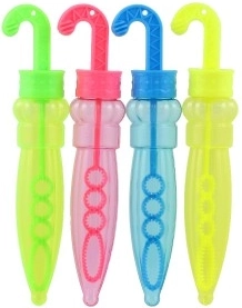 Seifenblasenstab in Regenschirmform mit einer Länge von 14 cm – das perfekte Spielzeug, das alle Kinder verzaubert. Er erzeugt Blasen, die wie magische Ballons aussehen und sich im Sonnenlicht farblich verändern.