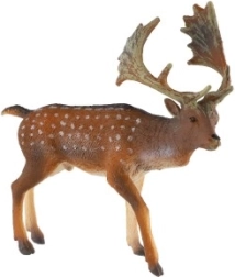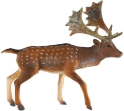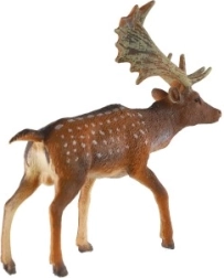 Die Figur zeigt den europäischen Damhirsch mit seinem gefleckten Fell und dem typischen schaufelförmigen Geweih – ideal für Unterricht und Spiel.