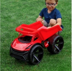 Entdecken Sie den robusten Kinder-Kipper MAXIMUS in kräftigem Rot mit einer Länge von 59 cm. Er kombiniert futuristisches Design, eine leichte und dennoch stabile Konstruktion sowie eine funktionale kipp- und öffnungsfähige Mulde mit bequemem Griff. Ideal zum Spielen zu Hause, im Garten und im Sand – Kinder werden die großen matten Räder und die liebevollen Details lieben.