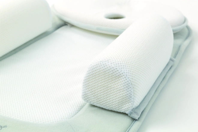 Die Baby-Lagerungsmatte ist für maximalen Komfort Ihres kleinen Schatzes konzipiert. Dank des abnehmbaren ergonomischen Kissens wird der Kopf des Kindes in einer sicheren und bequemen Position gehalten, was hilft, das Risiko eines platten Hinterkopfes zu vermeiden. Das kompakte und praktische Design ermöglicht die einfache Verwendung nahezu überall – im Kinderwagen, Babybett, Bett oder auf Liegeplätzen.