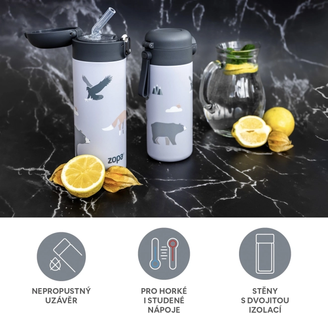 Thermoflasche für Getränke mit Trinkhalm 400 ml, Safari