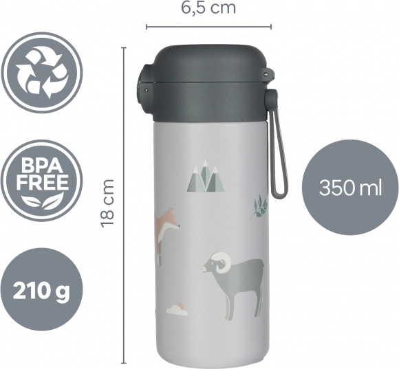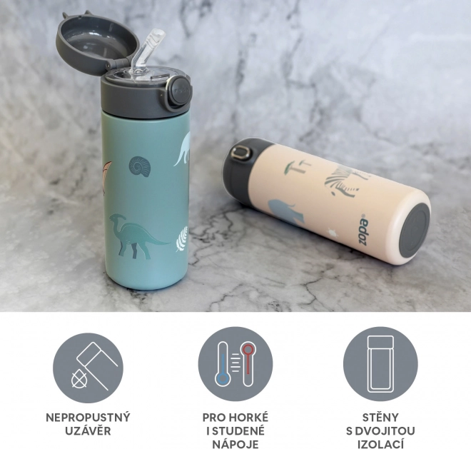 Thermoflasche für Getränke mit Trinkhalm und Silikonhalter 350 ml, Dino