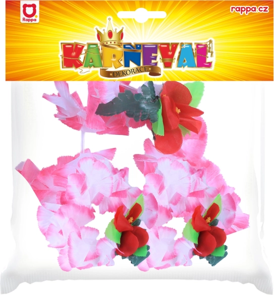 Dieses rosa Set im Hawaii-Stil ist ideal für Mottopartys, Karnevale und sommerliche Feiern. Stoffblüten in Rosatönen mit roten und grünen Akzenten wirken frisch und fotogen – so kommen Sie auf jedem Foto zur Geltung.