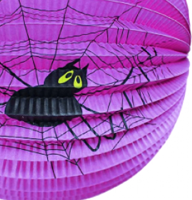 Stilvoller violetter Lampion mit Spinnenmotiv schafft auf jeder Halloween-Party eine gruselige Atmosphäre. Der runde Papierlampion mit Halterung für ein Teelicht ist leicht, lässt sich einfach aufhängen und verleiht Ihrer düsteren Deko sofort den richtigen Effekt.